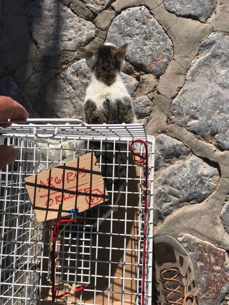 On 5/17/22, Sterling Davis (aka the Trap King) came to our island to trap cats for a TNR session. Neutering was performed on 11 male and 3 female cats as well as tooth extractions and blood tests on another 4. Three cats were transferred to a clinic in Athens by the Let’s Be SMART team.